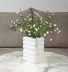 2 ADET VAZO DAHİL,VAZODA ÇİÇEK,BEYAZ YAPAY ÇİÇEK,VAZO DEKORATİF KARE ÇİZGİLİ 8X6X16CM