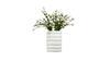 Tek dal beyaz yapay çiçek ile birlikte sunulan bu vazo, yaşam alanlarınıza zarif bir dokunuş katar.