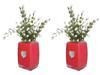 Vazolar, dekoratif kristal taşlarla süslenmiş kırmızı kalp detaylarıyla göz alıcı bir görünüm sunuyor.