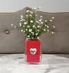 2 ADET VAZO DAHİL,VAZODA ÇİÇEK,BEYAZ YAPAY ÇİÇEK,VAZO DEKORATİF KRİSTAL TAŞLI KIRMIZI KALPLİ 6X6X16CM