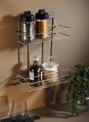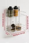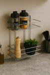 Sas Haus 2 Katlı Krom Mutfak Askısı, Baharatlık Rafı - Duvara Monte, Yapıştır/Vidala, Paslanmaz Metal 26 x 33