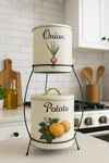 Pratik ve şık bir sebzelik arayanlar için mükemmel bir seçenek! Bu 2 katlı kulplu metal patates soğanlık kovası, mutfaklarınızda veya depolama alanlarınızda düzeni sağlayacak. Ürün, 66 cm yükseklikve dayanıklı metal yapısıyla uzun ömürlü kullanım sunar. Dama desenlitasarımı, rustik bir hava katarken, göz alıcı bir dekoratif öğe olarak da işlev görür.