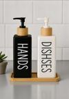 Albetto 2’li Hands Dishes Soft Dekoratif Mutfak Banyo Sıvı Cam Sabunluk Seti 500ml Bambu Stantlı Set