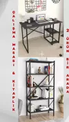 Bofigo 2 Raflı Çalışma Masası Bilgisayar Masası Ofis Ders Masası + 5 Raflı Kitaplık Metal Kitaplık Antrasit