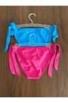 Çok renkli tasarımıyla plaj modasına şıklık katan pembe-mavi bikini altı, yaz aylarının vazgeçilmezi olacak.