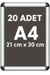 20 adet A4 boyutunda, dayanıklı Alüminyum malzemeden üretilmiş çerçeveler, uzun ömürlü kullanım sunar.; - Rondo köşe tasarımı ile modern ve şık bir görünüm kazandırarak dekorasyonunuza estetik bir dokunuş ekler.; - Açılır kapanır mekanizması sayesinde içerideki içerikleri kolayca değiştirebilirsiniz; böylece her zaman güncel ve taze bir görünüm elde edersiniz.; Türkiye menşeli ürünler, yerel üretim gücünü desteklerken aynı zamanda kalite standartlarına uygun olarak üretilmiştir.; Alt üst Alüminyum Çerçevedir