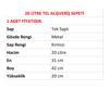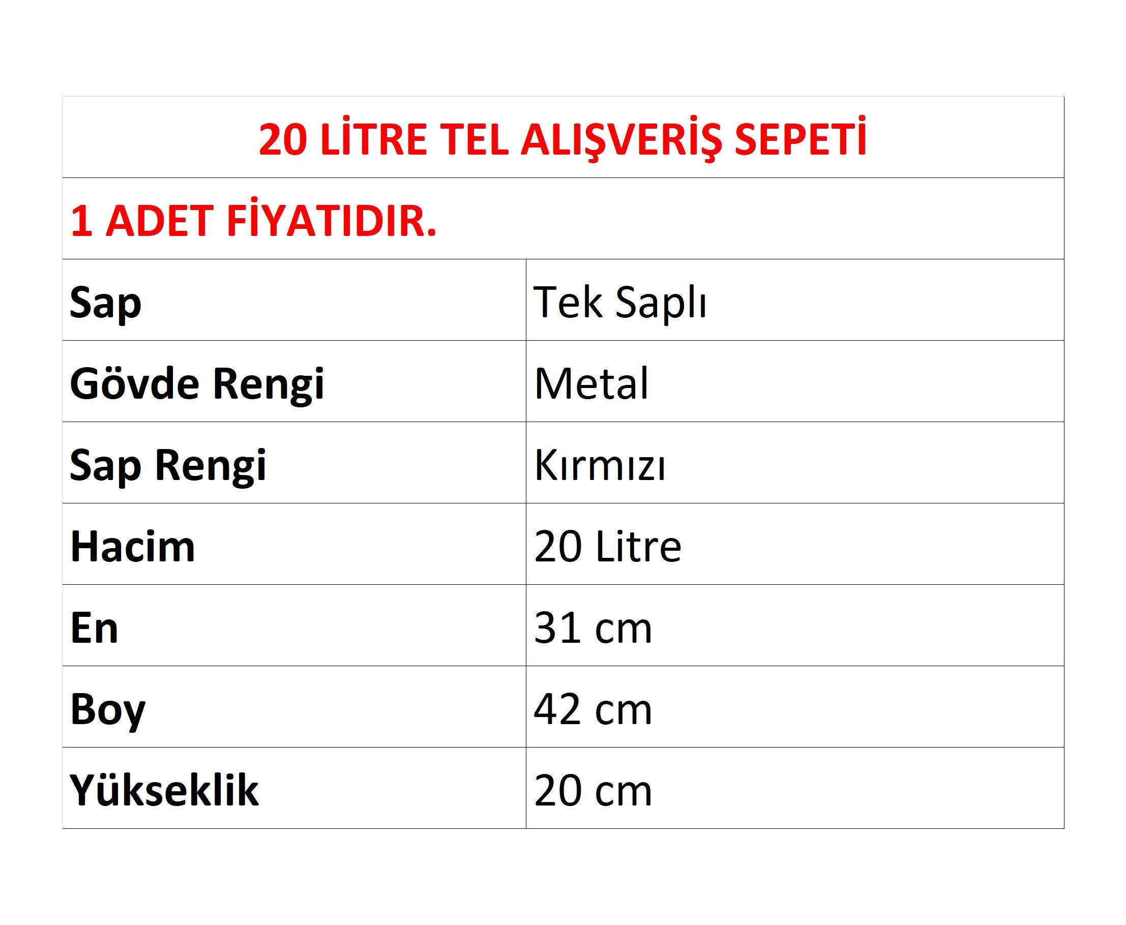 Tel Alışveriş El Sepeti 20 Litrenin özellikleri ve açıklamaları aşağıda verilmiştir. Farklı ölçü seçenekleri ve daha fazla bilgi için mağazamızı ziyaret edebilirsiniz.