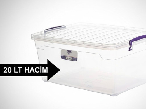 20 LT Şeffaf Plastik Saklama Kutusu Kapaklı