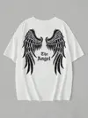 20/1 Penye Compack Dark Angel Baskılı Oversize Kısa Kol Yazlık T-shirt- Beyaz