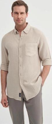 2024 Uzun Kollu Müslin Kumaş Erkek Gömlek Bej