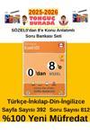 - 2025-2026 eğitim-öğretim yılına özel hazırlanmış, 8. sınıf öğrencilerinin tüm derslerine yönelik kapsamlı konu anlatımı ve soru bankası.; - Her konunun ayrıntılı olarak ele alındığı, öğrencilerin temel kavramları pekiştirmelerine yardımcı olan konu özetli içerik.; - Türkçe basım dili ile hazırlanmış, öğrencilerin anadillerinde rahatça çalışmalarına olanak tanıyan dil yapısı.; - Toplamda 351-400 sayfa arasında değişen geniş içerik, kapsamlı bir çalışma deneyimi sunar.; - Tekil ürün olarak sunulan bu kitap, öğrencilerin ihtiyaç duydukları tüm materyalleri tek bir kaynakta toplar.; - Normal boyutlarıyla taşıması kolay ve okuması rahat olan bu kitap, akademik başarıya giden yolda önemli bir adım atmanızı sağlar.