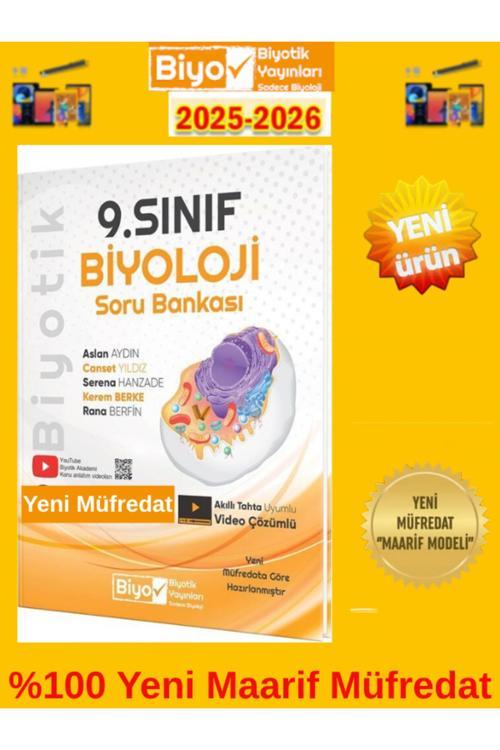 Biyotik Yayınları 2025-2026 Biyotik 9.Sınıf Soru Bankası Video Çözümlü %100 Yeni Müfredat +Dokunmatik Kalem