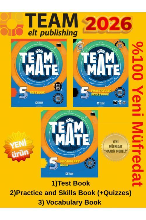 Team Elt Publishing 2025-2026 Team Elt 5.Sınıf Team Mate(Test-Practice-Vocabulary Book)3 Kitap Set (Yeni Ürün)+Kalem
