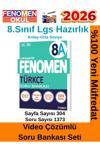 Fenomen Yayıncılık 2026 8.Sınıf Türkçe A (8A)Video Çözümlü Kolay-Orta Seviye Soru Bankası(1373 Soru)