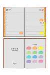 Kuşe sıvamalı, selefonlu Kabartma laklı , sert kapaktır.; İplik dikiş ciltlidir.; 2026 yılı için renkli, aylık, haftalık, günlük bölümlerden oluşur.; Her ay için farklı renklerde kenar renkleri içeren özel tasarım sayfalar bulunmaktadır.; İç sayfaları 1. hamur kağıttır.; Büyük boy (17x24) ve 320 sayfadır.