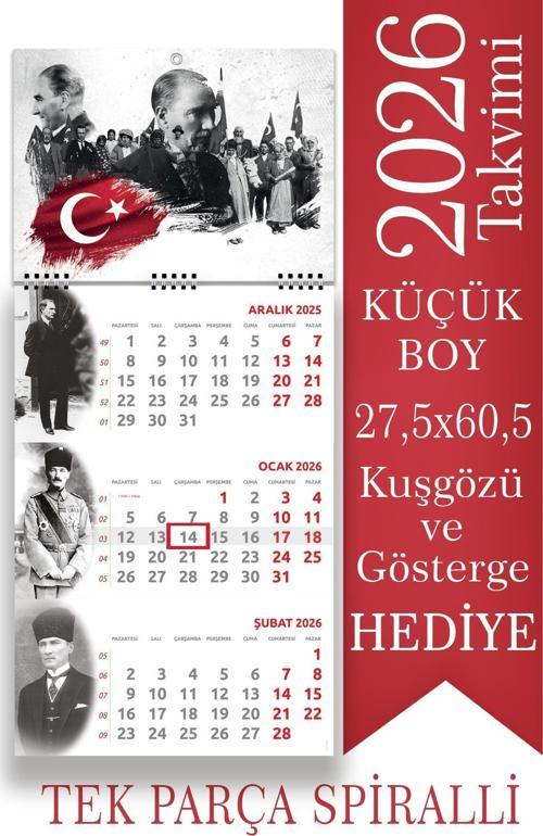 Sticker Art 2026 Atatürk Küçük Boy Gemici Takvimi Denizci Duvar Takvimi 27,5x60,5 Tek Parça Spiralli