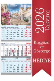 2026 Büyük Boy Gemici Takvimi Denizci Duvar Takvimi Mavi Renk Üç Parça Spiralli 33x77,5 cm