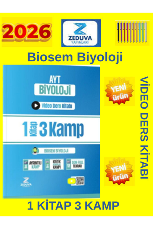 - Üniversiteye hazırlık sürecinde temel bilgi ve becerileri pekiştirmek için ideal bir kaynak olan Zeduva Ayt Biyoloji Biosem 1 Kitap 3 Kamp Konu Anlatımlı Soru Bankası, 2026 basım yılı itibarıyla güncel içerikle donatılmıştır.
