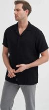 2039 Kısa Kollu Apaş Yaka Müslin Kumaş Erkek Gömlek Siyah