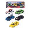 Paket içeriği – 1. Alfa Romeo 4C Spider, 2. Lamborghini Countach LP 400, 3. Lamborghini Huracán Avio, 4. Lamborghini Urus, 5. Alfa Romeo Giulia – 7,5 cm uzunluk, metal/plastik