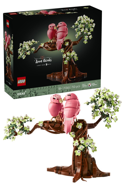 - KUŞ DEKORU – Çiçek açan bir ağaçta sevgi dolu bir anı paylaşan 2 muhabbet kuşu içeren, yetişkinlere yönelik LEGO® Ideas Muhabbet Kuşları (21365) yapım setiyle aşkı ve arkadaşlığı sergileyin