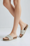 Pienn 20037 Beyaz Taşlı Günlük Bayan Terlik - Image 1