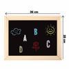 Kutu içerisinde; Manyetik Çift Taraflı Tablet Ahşap Yazı Tahtası, 1 adet yaz-sil kalem, 1 adet tebeşir ve 62 parça alfabe-sayı magnet seti bulunmaktadır.