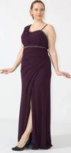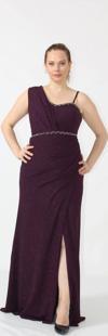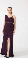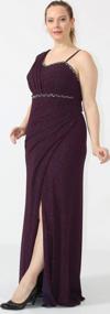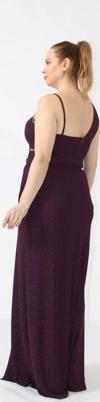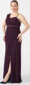 2402 Tek Omuzu Kalın Simli Kumaş Beli İşlemeli Yırtmaçlı Abiye.