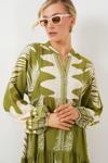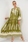 2423 Otantik Desenli Tesettür Elbise - Mint Yeşili