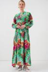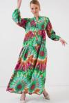 2423 Otantik Desenli Tesettür Elbise - Yeşil 9