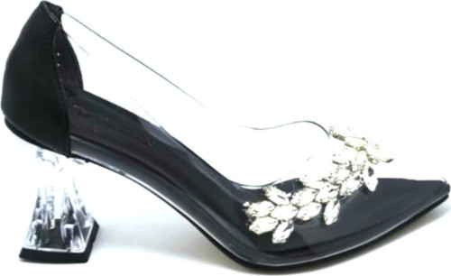 PUNTO 248101 Siyah Kadın Şeffaf Taşlı Abiye Ayakkabı