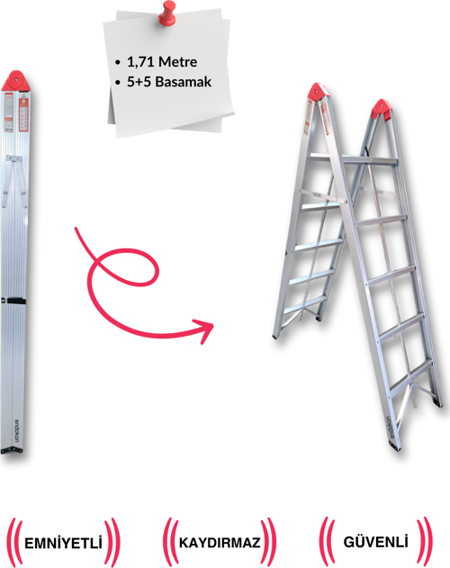 2*5 171 cm Katlanır Alüminyum Çubuk Merdiven: Hafif, Güvenli ve Pratik!