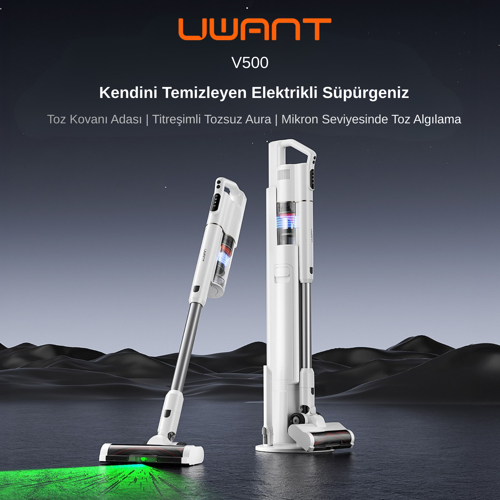 Uwant 25.000Pa Emiş Gücüne Sahip Kendisini Temizleyebilen BLDC, Şarjlı, Standlı Dikey Süpürge V500 Beyaz