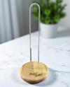 Tutucunun dayanıklı ve şık bir kombinasyonu olan ahşap stand ve metal teller, uzun süreli kullanım için sağlamlık sunar.