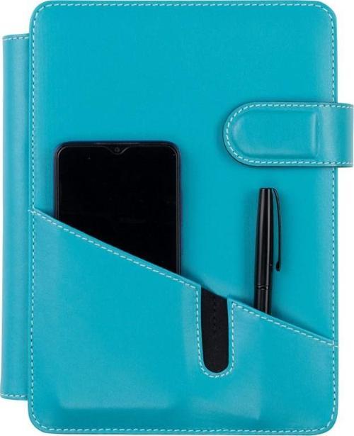 2K 2026 YENİ YIL TARİHLİ GÜNLÜK ÇİZGİLİ 15*21 CM İÇ AJANDALI 4 HALKALI TELEFON KILIFI KAPAKLI DERİ ORGANİZER TURKUAZ