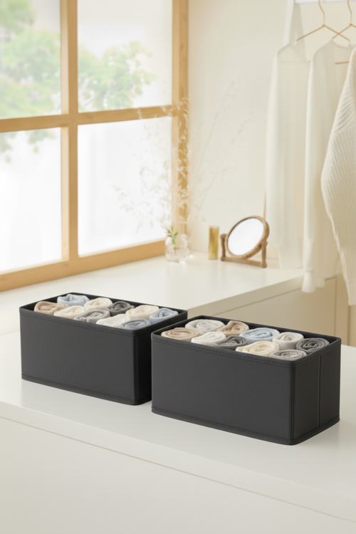 PH Prendi Home 2Li Çok Amaçlı Dolap İçi Çekmece Düzenleyici Kutu Antrasit Kumaş Çorap Ve İç Çamaşırı Organizeri
