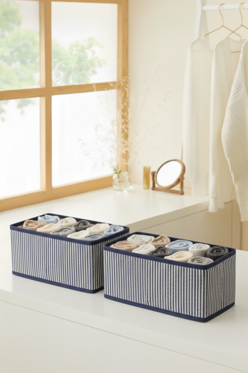 Dağınık çekmeceler ve aradığınızı bulamadığınız dolaplarla vedalaşın! Bu şık ve fonksiyonel 2'li düzenleyici kutu seti ile gardırobunuzdaki karmaşaya son verin. Modern çizgili tasarımıyla sadece düzen sağlamakla kalmaz, aynı zamanda dolaplarınıza ve raflarınıza estetik bir dokunuş katar. Artık her sabah aradığınız çorapları veya aksesuarları bulmak saniyelerinizi alacak.