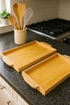 2'li Doğal Bambu Sunum Tepsisi Seti – Kulplu Dikdörtgen Servis Tepsisi