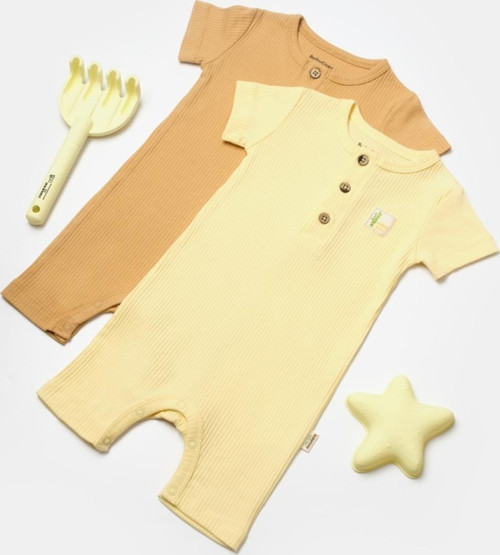 Günlük kullanıma uygun, rahat ve şık tasarımıyla bebeklerin konforunu ön planda tutan 2'li kısa kollu tulum Bisiklet yaka kesimi sayesinde sade ve modern bir görünüm sunar, bebeğinizin boynunu rahat ettirir.
