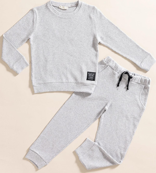 For You Kids 2'li Pamuk Waffle Sweat Jogger Açık Gri Alt Üst Takım %100 Pamuk doğal waffle kumaştan üretilen cep ve etiket detaylı bu harika takım, şık tasarımıyla miniklerin kalbinde taht kuracak! Rahat yapısı ile çok şık bir tasarıma sahip renklerin harika uyumundan oluşan bu modelimiz, çocuğunuzun beğenisini kazanacaktır. Nefes alabilen esnek doğal pamuk kumaştan üretilmiştir. Kalıplar tam kalıptır.