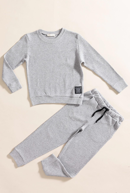 For You Kids 2'li Pamuk Waffle Sweat Jogger Koyu Gri Alt Üst Takım %100 Pamuk doğal waffle kumaştan üretilen cep ve etiket detaylı bu harika takım, şık tasarımıyla miniklerin kalbinde taht kuracak! Rahat yapısı ile çok şık bir tasarıma sahip renklerin harika uyumundan oluşan bu modelimiz, çocuğunuzun beğenisini kazanacaktır. Nefes alabilen esnek doğal pamuk kumaştan üretilmiştir. Kalıplar tam kalıptır.
