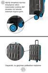 ·         Büyük Boy Valiz Ölçüleri: Boy: 77 cm, En: 47 cm, Derinlik: 30 cm Ağırlık: 3,8 kg Hacim:100 lt Kapasite: 25 kg