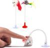 1 ADET - 2’li Vantuzlu Fareli Tüylü Hareketli ve Esneyen Eğlenceli Peluş Kedi Oyuncağı