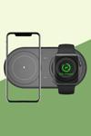 Tek cihazla birden fazla ihtiyacınızı karşılayabileceğiniz 2’si 1 Arada Kablosuz Şarj Aparatı, modern yaşamın vazgeçilmez yardımcılarından biri! Saat, kulaklık ve telefonlarınızı hızlı ve kablosuz bir şekilde şarj etmenizi sağlayan bu aparat, şık ve kompakt tasarımıyla hem zamandan hem de alandan tasarruf etmenizi sağlar.