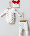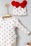 3-6-9-12 Ay Kız Bebek Takımı Kalp Desenli Şapkalı 3'lü Kırmızı