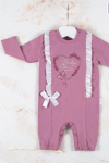 3-6-9-12 Ay Kız Bebek Tulumu Love Kalp Nakışlı %100 Pamuk Mor