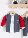 3-6-9-12-18 Ay Erkek Bebek Takım Dinazor Desenli Hırkalı 3'lü Kırmızı