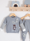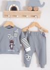 3-6-9-12-18 Ay Erkek Bebek Takımı Gift For You Desenli 2'li %100 Pamuk Gri