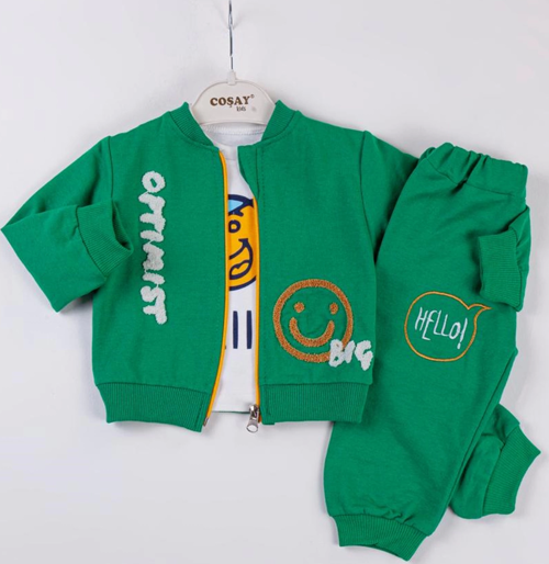 Açık yeşil renkte %100 pamuklu iki parçalı erkek bebek takımı. Optimist nakışlı detaylara sahiptir. 3-18 ay arası bebekler için uygundur. Yumuşak yapısı ve nefes alabilir özellikleri ile konfor sağlar.