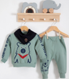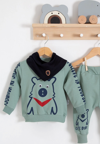 3-6-9-12-18 Ay Erkek Bebek Takımı Oynar Gözlü Fularlı 3'lü Yeşil